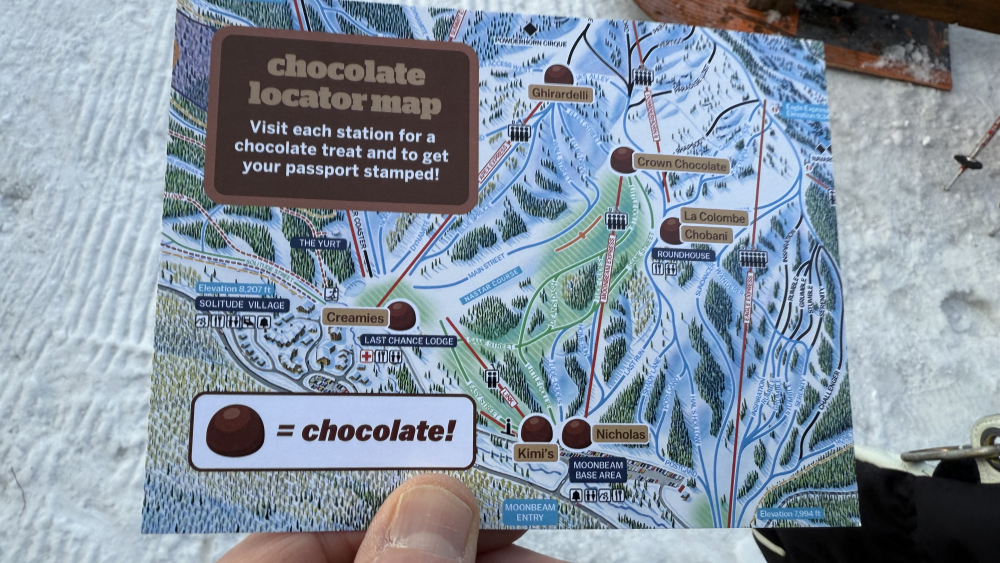 After riding a 3.5 earthquake the other night, I’m back from a sweet Valentine’s Day at Solitude. Day started out in the upper 20’s with a bite in the air until the sun came over the ridge and made it feel a lot warmer than the air temp. With a little snow this past week, all the groomers were in wonderful packed powder shape. I line up on the singles line and got paired up with a trio of UTSRs who are Solitude SP holders and have their own reserve line and ski there every day. There was no reason to bull-rush the chair but they do anyway, so I had to keep up and get 1st civilian chair. Did some high-speed groomers with them until I bolted for other runs. The mountain had a Valentine’s Day chocolate tour, so I had to do that, hitting all the free chocolate giveaways. The snow under the Sunrise lift was grate, so I just kept lapping it and the adjacent woods. It was also another Utah dream day, with temps in the 50’s back in the valley, so hit up T.F. Brewing and hung out with the dogs in the courtyard, having a couple beers. Also Solitude & IKON giving away perks for repeated visits…