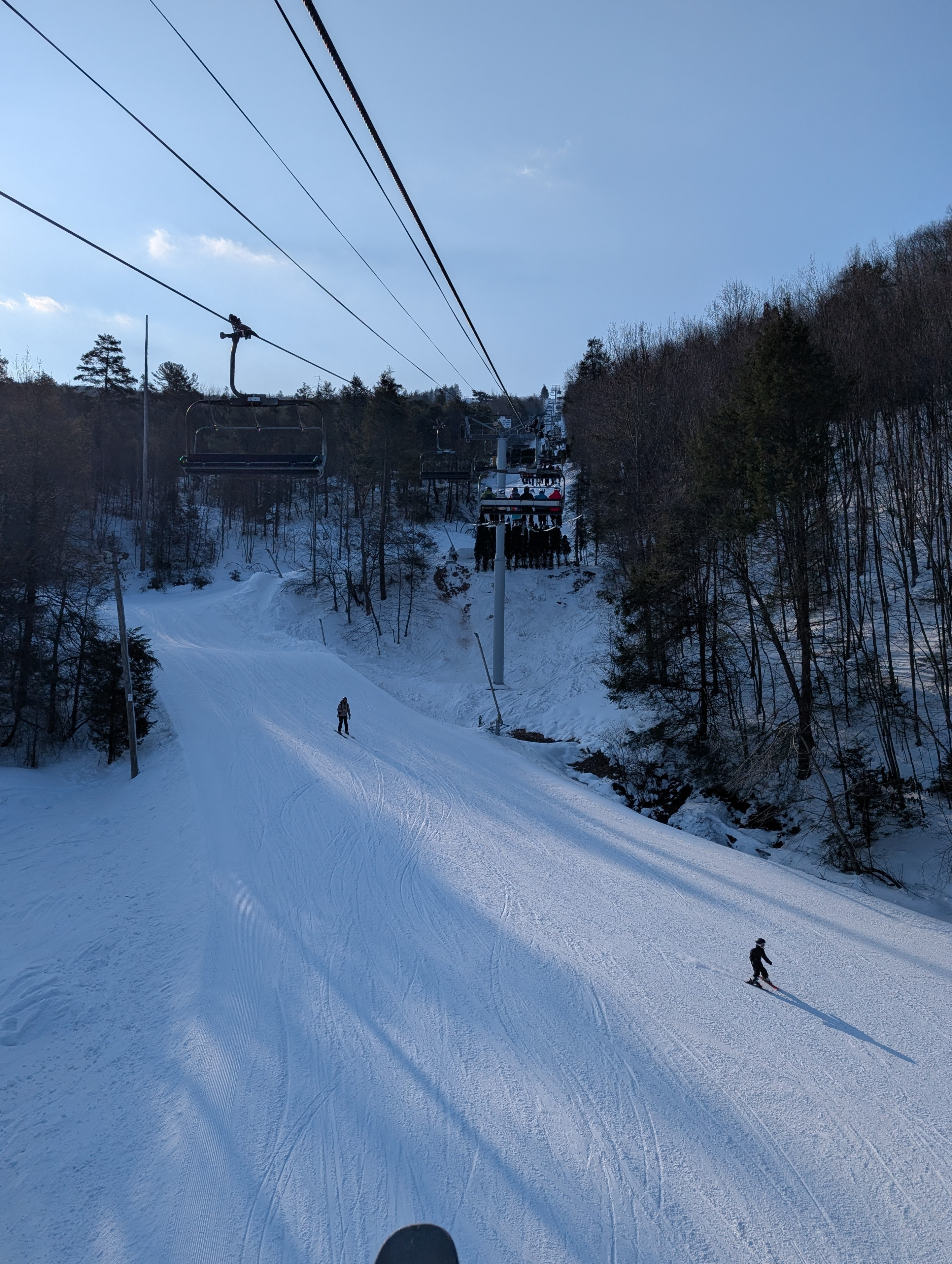 Hey All, I’m back from a fun day at Blue mountain the true mountain. I arrived at the lower lot before 720am and it was in the mid 20s under partly sunny skies. In the house was everybody except BenM, Mixilplix, Root, Angryhugo and Zonked. I overdressed so when I went in to pee I dropped a layer and stuck my green fleece on top of the lockers…something I’ve never done but I’m a progressive guy. I think their civilian OG six pack cause my gate was slow to open and first run on Challenge which was not very good…some slick and crunchy as they must have blown some elephant snot on it overnight. Switchback was OK, some smooth some crunchies, lazy Mile I found to be pretty nice along with coming soon early. Main Street was ok…midway was small cookies and Paradise was pretty nice. I mostly skied with Airhead and SaltyAnt wow salty is a pole planting pro…I was in awe just watching. Crowds were moderate to heavy, no real liftlines while I was skiing but with all three high speeds running the trails were quite crowded. I went on sidewinder once and it wasn’t that good..that run gets so much traffic and people throw their skis sideways a lot due to all the roof rollers that it goes to shit fast. Nightmare Dreamweaver is now a terrain park and I finished my session with a paraweaver and Dreamweaver had pretty icy and chunky snow. Skiing overall was ok to good and the parking lot was fun and with the warm weather I hung out in the lot way longer than I skied and prob have sunburn..When I left around 130ish there were a shit ton of people and I had to be aggressive to get out of the lot in a timely fashion with all the people across the street… Ski most of you tomorrow JADIP