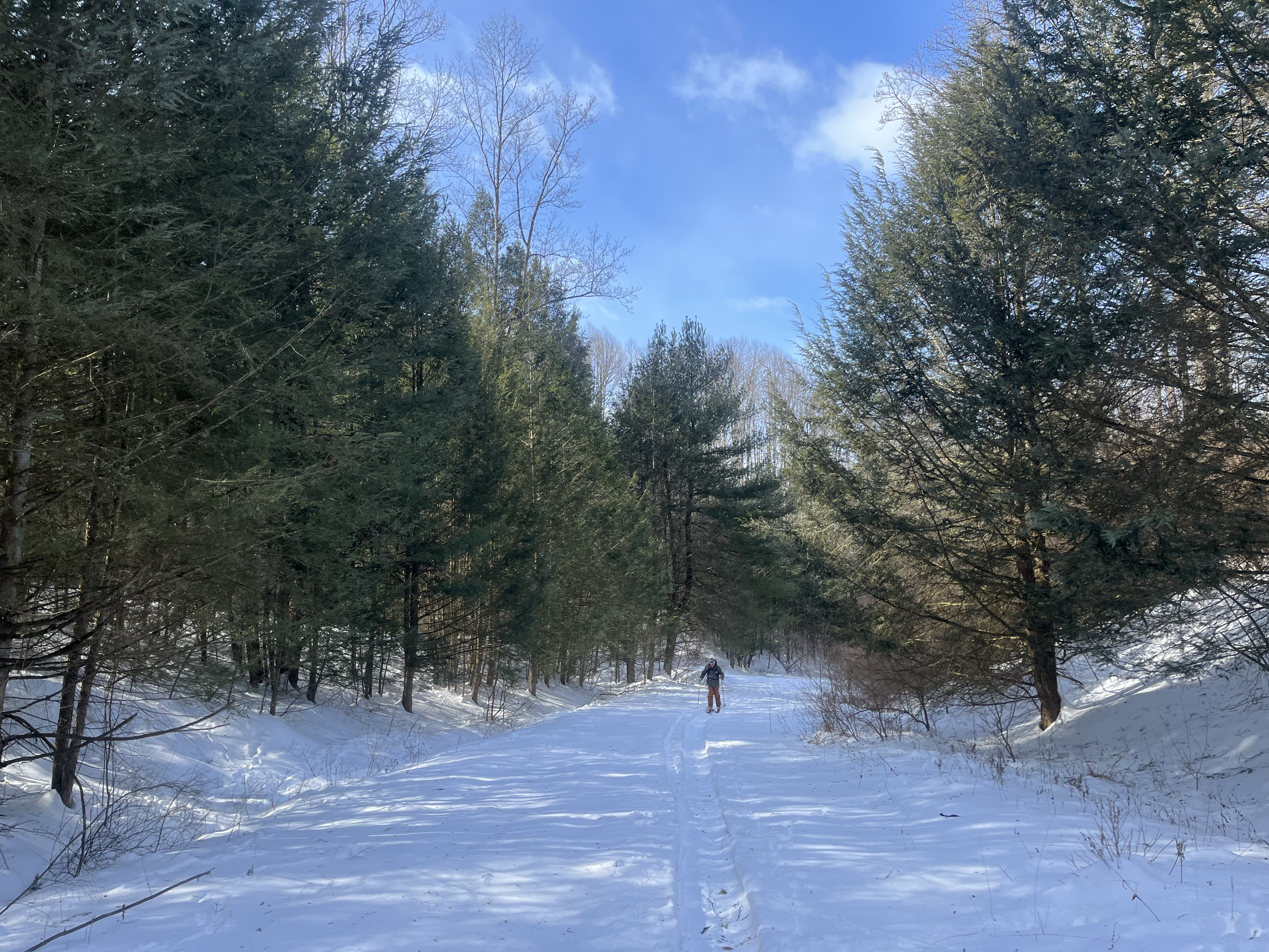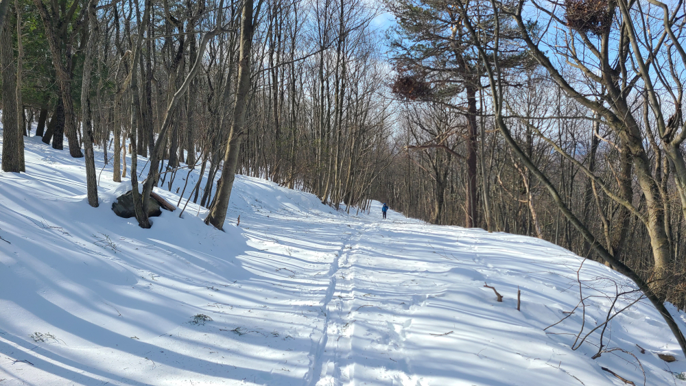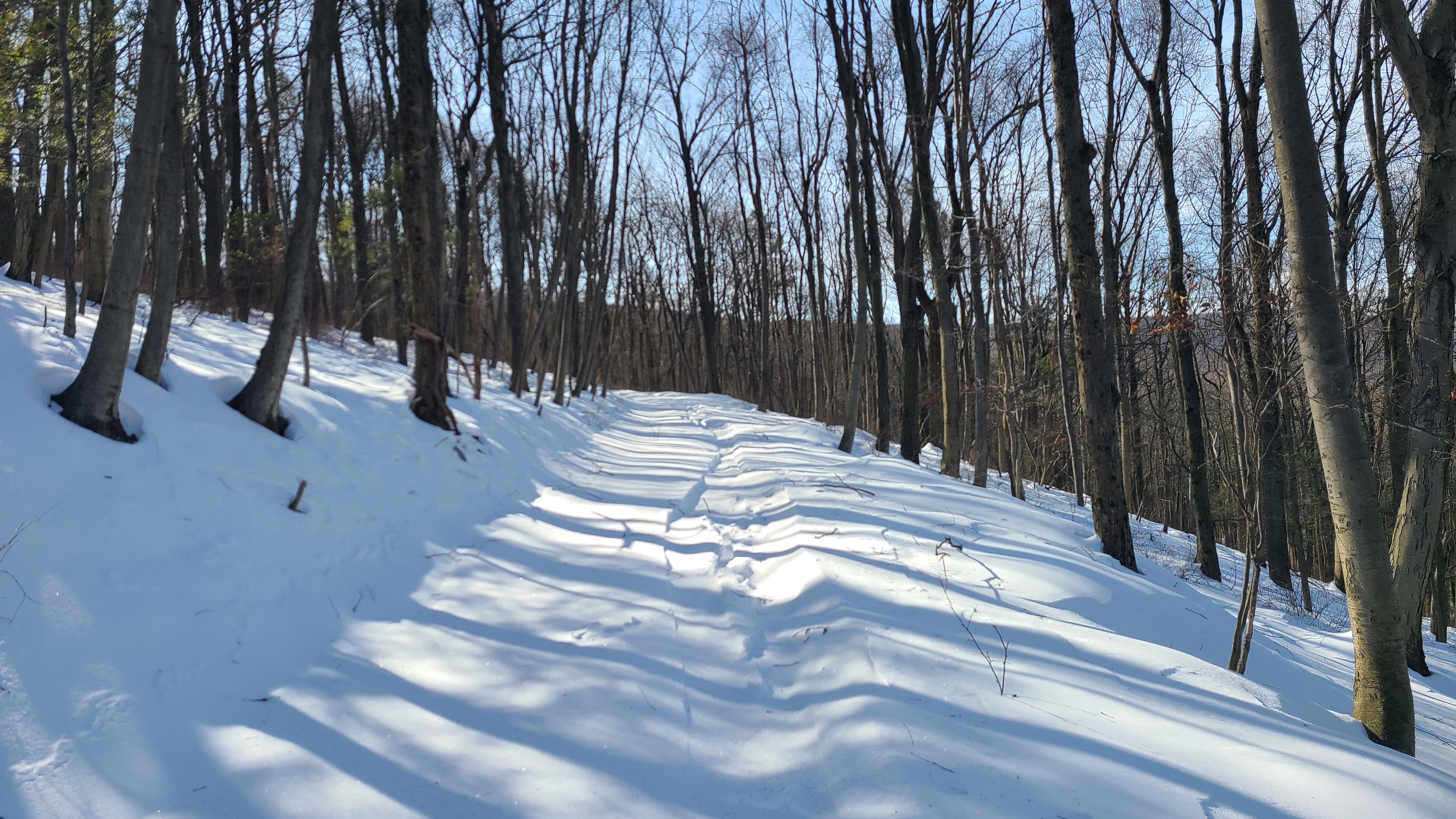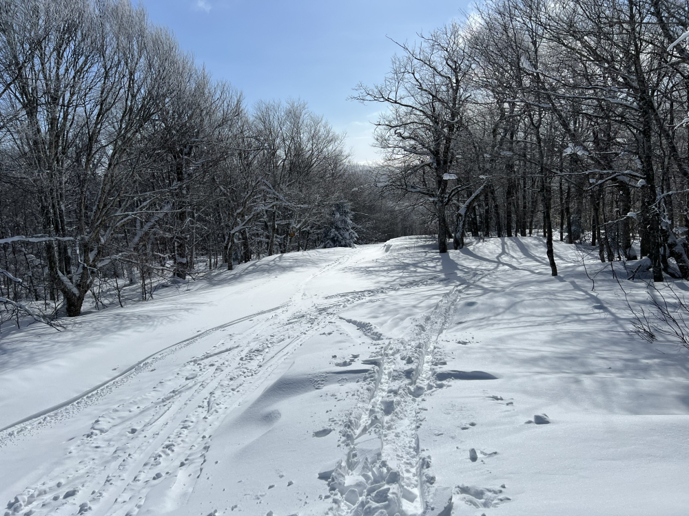 Too cold for lifts today so uphill is the game. Visited Prospect Mountain nordic center outside Bennington. This used to be an alpine and nordic ski area but the alpine ski area closed in the 1991. The trails are still maintained for alpine touring and cross country skiing. Temp was -4F pulling into the parking lot. About a dozen other cars were there at noon. An all day pass for alpine touring or cross country costs $25. The main skin track is straight up the old T-bar line. Prospect is not steep, and it's an easy skin up to the top. Someone in the lodge said they'd been getting 1-3 inches of orographic lift produced snowfall a lot of nights over the last few weeks. They got maybe 3-4 inches last night. There was one other set of fresh tracks up today and one guy followed me up. Most of the trails have filled back in after the last major snowfall and are about knee deep in very light powder. The mountain was, for all intents and purposes, untracked this morning with a couple of exceptions like the lift line. It was very easy to find routes down with a completely pristine powder surface. This was probably the best day of snowboarding I've ever had. Did not feel the temps for the most part. The air was dry and there wasn't too much wind. Had a hot drink and some chili in the lodge before heading out. Absolute 10/10 day.9 points