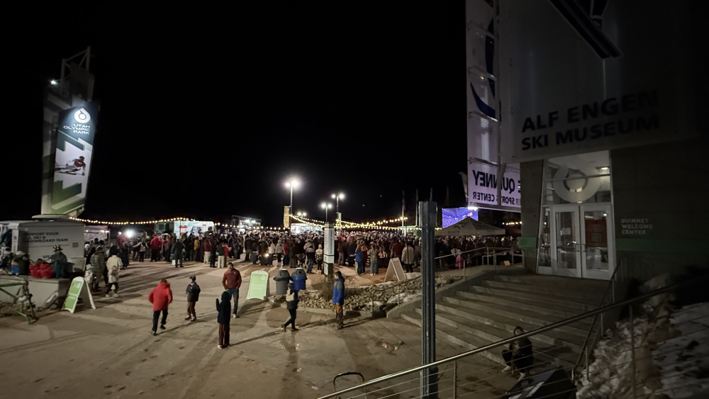 And another groundhog, er, bluebird day. Temp on arrival was 30’ with firm snow walking to the lodge. Skiing was pretty much groundhog as well with no new snow and rising daily and nightly temps, the groomers were far more Eastern than Western and were very fast. Still could get and edge, but there were actual icy spots appearing as well as grass poking up through and lots of rocks appearing again. There are some rumors of some snow this week, one can only hope… Did hit up the Olympic village for an opening ceremony viewing party that was fun with some free Deer Valley chocolate chip cookies.7 points