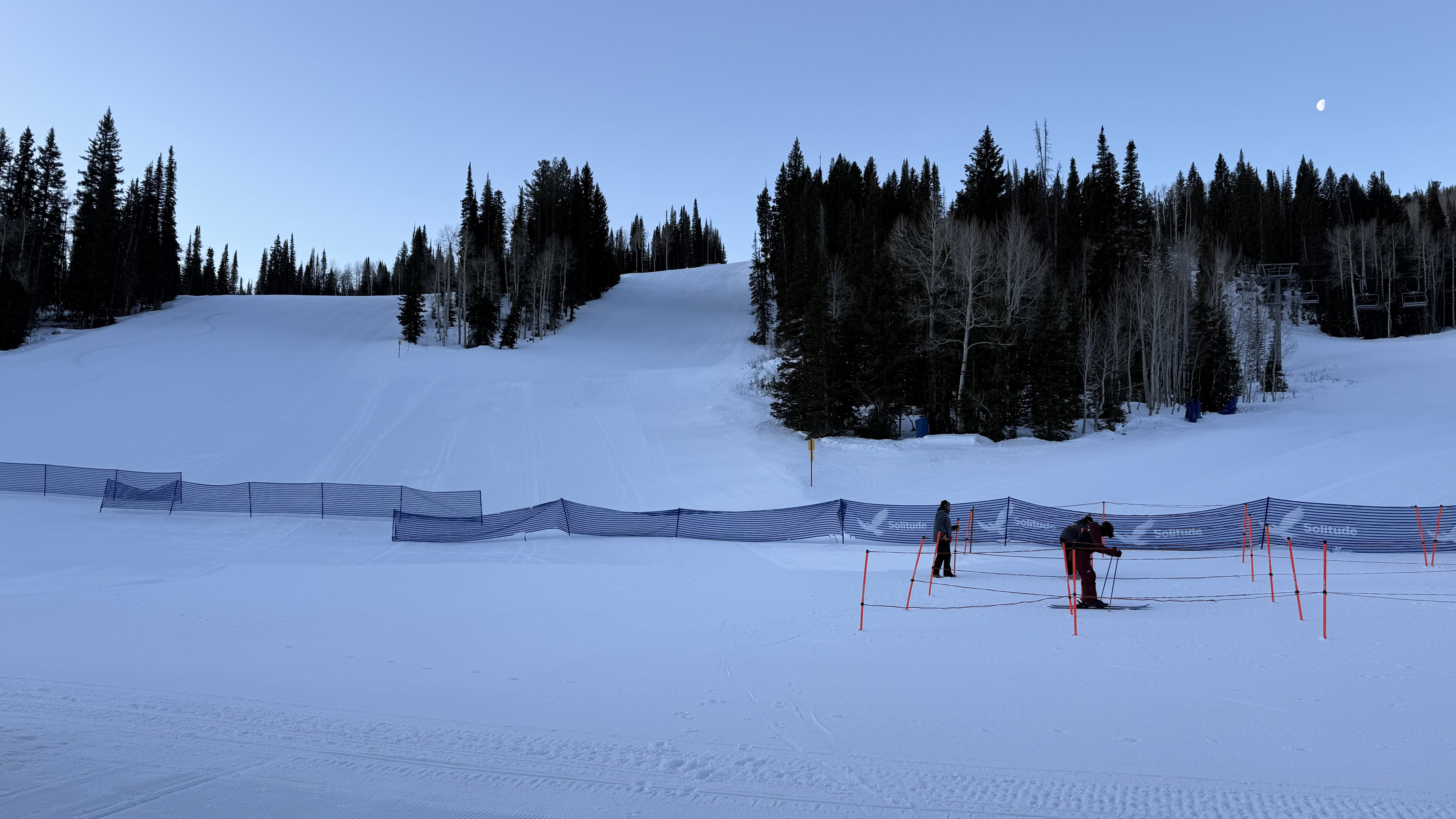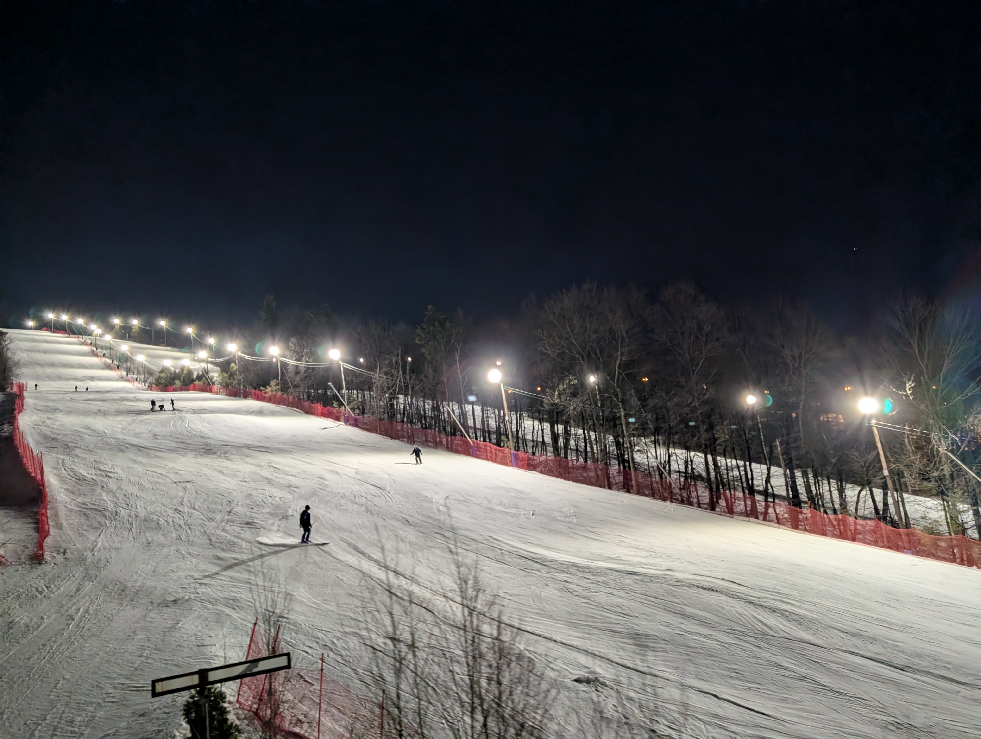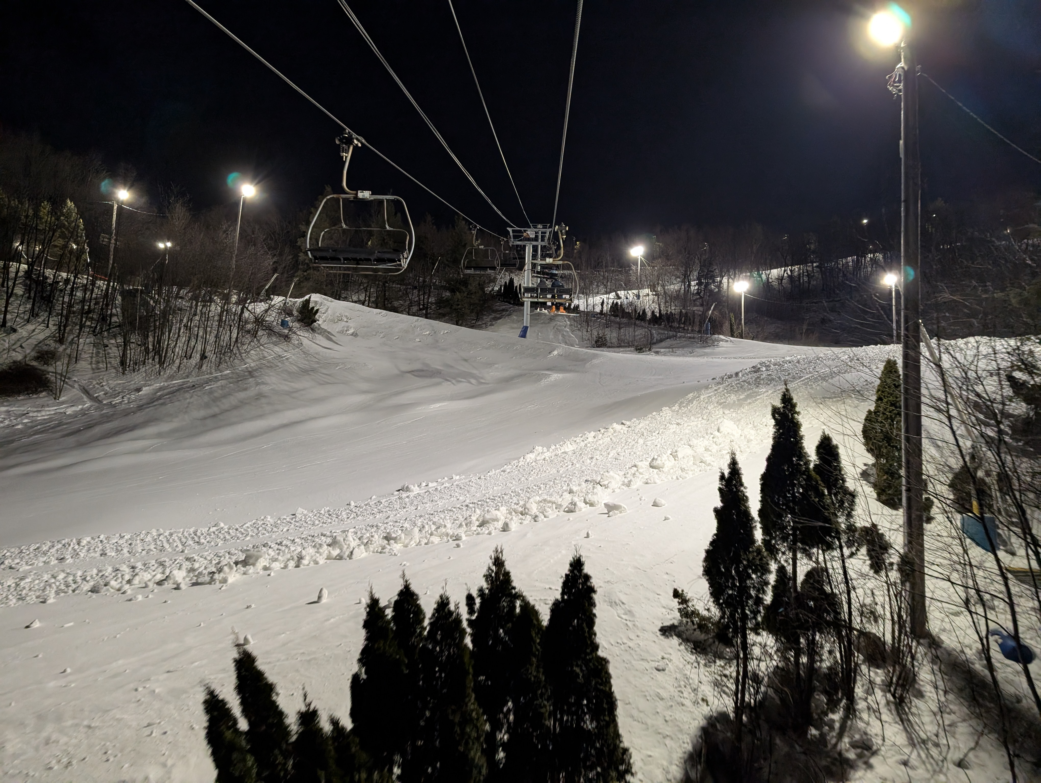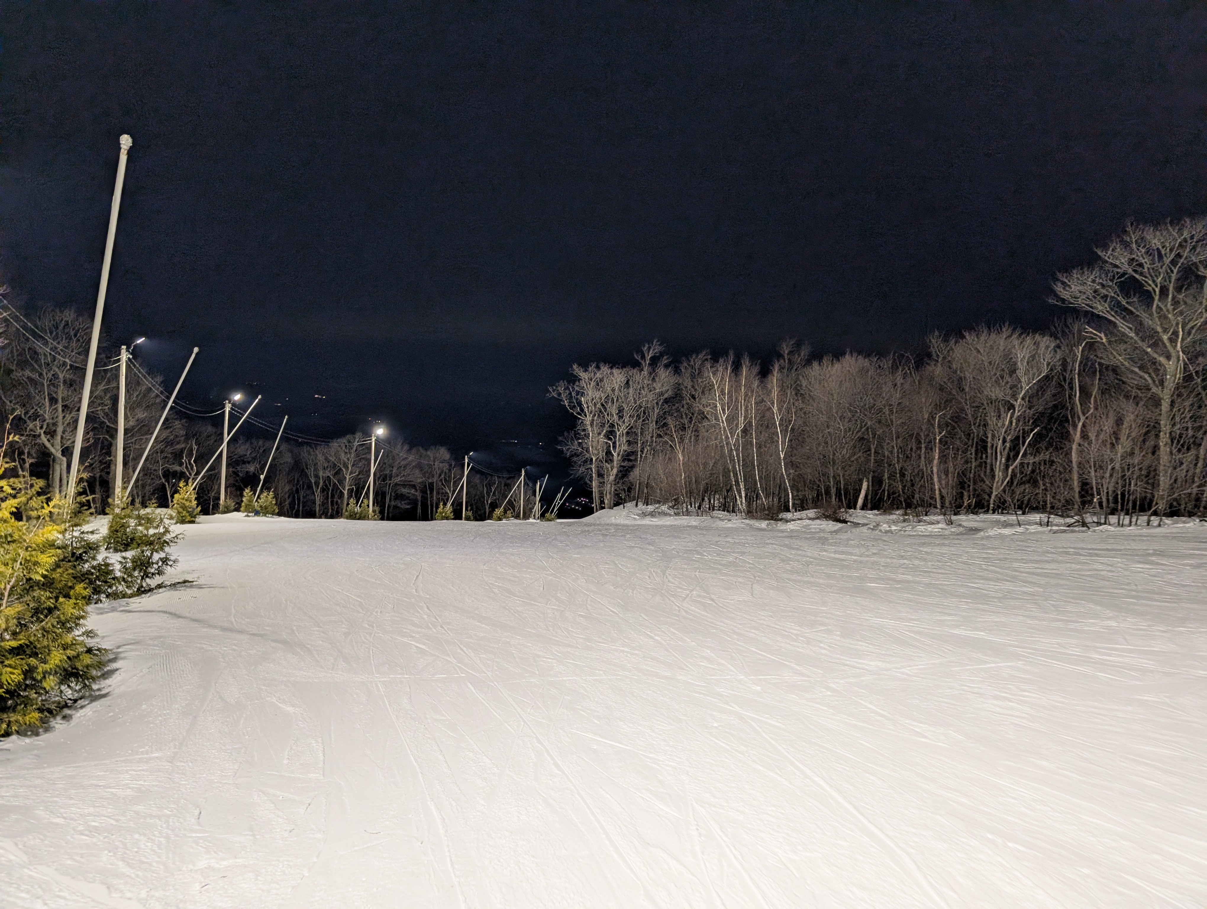 Making night moves. Not to be confused with money moves. Of which I also make. First time at Blue in a minute. It's below freezing but it feels glorious out. Crowds are minimal. I'm waiting for the other shoe to drop and more people to show up. However it hasn't happened just yet. Snow condition so far...a solid night session 9 out of 10. Chalky grippy and smooth. Can let them go. Really really nice night9 points