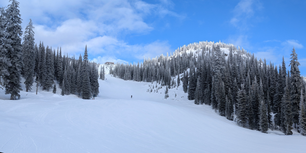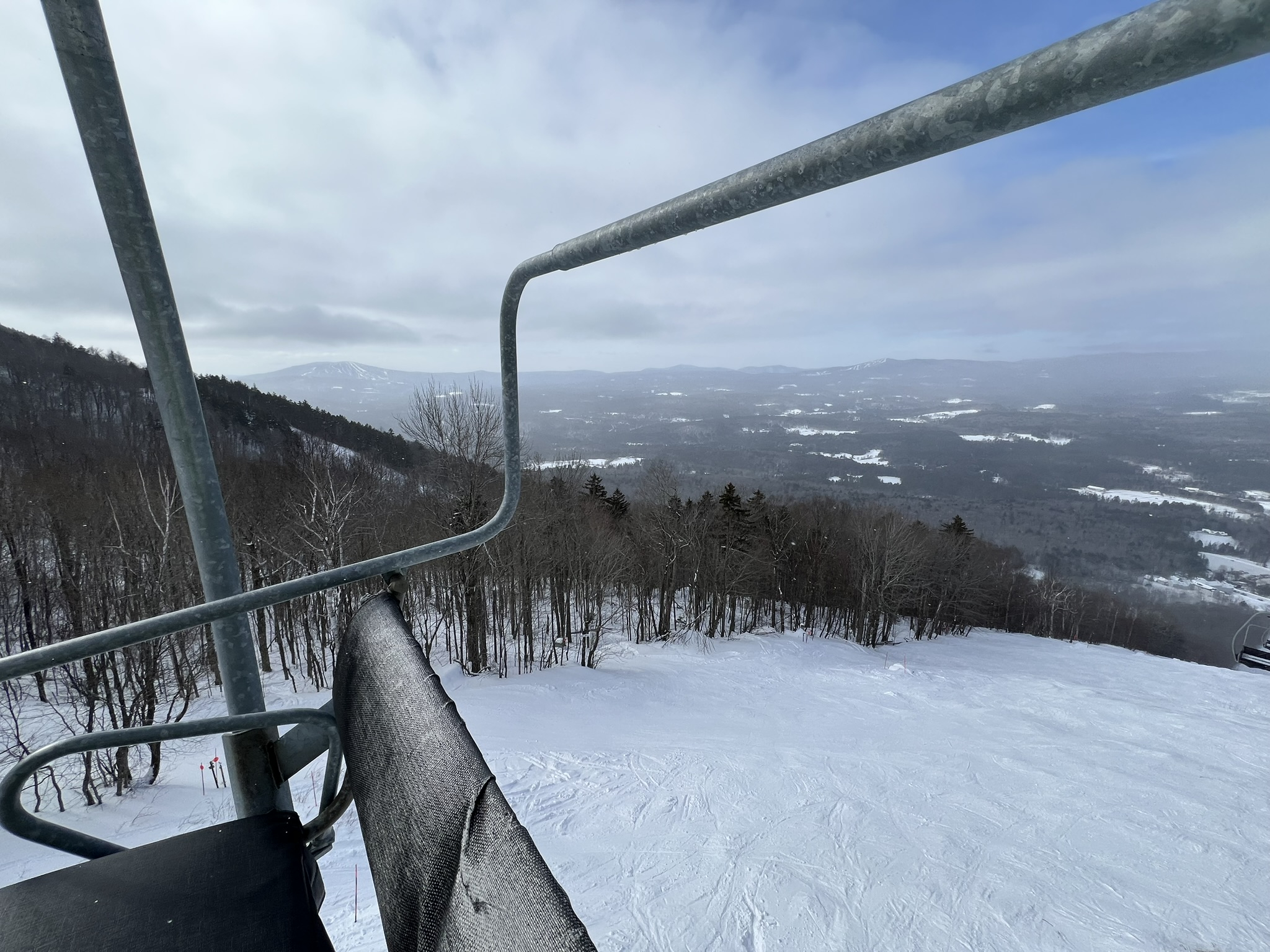 Short morning session. Demo day a little busy but no lines. Third chair quad . First run on razors…Meh , 1” pre pitch sasturgi filled the chord . Top pitch was wind blown the rest was ok . Over to Curtsies and the Chute which was bumped up . First run on the Chute the light was flat and the new blown which was a little sticky threw me off. I went back seven more runs and had the trail to myself. Main st gun run was nice as well. Back to work 10:304 points