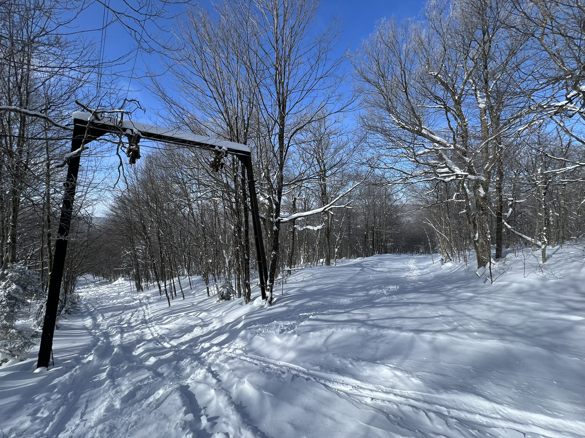 Hit the game lands skin track with @mbike-ski after skiing Blue. Nice skin up through some woods and open areas. Mike had a fish scale set up which was far superior for the downhill. Took a spill when one ski decided to go an submarine. It's a nice trail, but more suited for a fish scale ski. I usually don't drink after skiing, but after that downhill I needed it. Thanks Mike.8 points