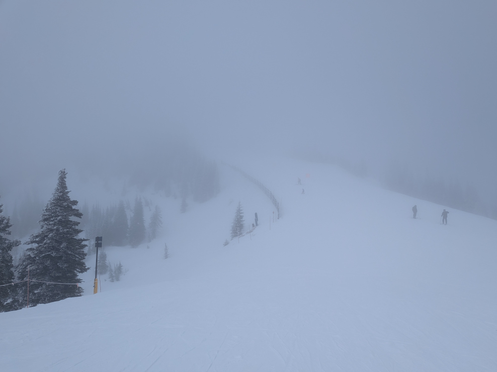 Woke up in Snowmass to 6” of new snow. Got in line at 8:45 and they started loading 7 min early! Snow was on the wetter side and when I got off the lift my butt was soaking wet. I was not wearing new bibs but some older shell pants. First run from top of VX down to Alpine Springs was deep! I thought no way this only 6”. Upper calf deep. When I got on Alpine Springs I realized both my shell and pants were totally wetted out. I had re water proofed them early season but since they are both about 9years old guess it’s time they retire. I was def uncomfortable being wet, but since it was warmish it was tolerable. Took a few more off Alpine Springs and they were all deep hardly touched. Went up Sheer Bliss as they only run Big Burn on weekends but it all services the same terrain. Tried Powerline Glades and there were still lots of hidden sharks so I skied back onto Sneakys rest of the way down. Sky cleared briefly the my last run down to the base it was like I was skiing thru soup, could barely see. Overall stellar morning. Hoping this is the start of the Pattern change.7 points