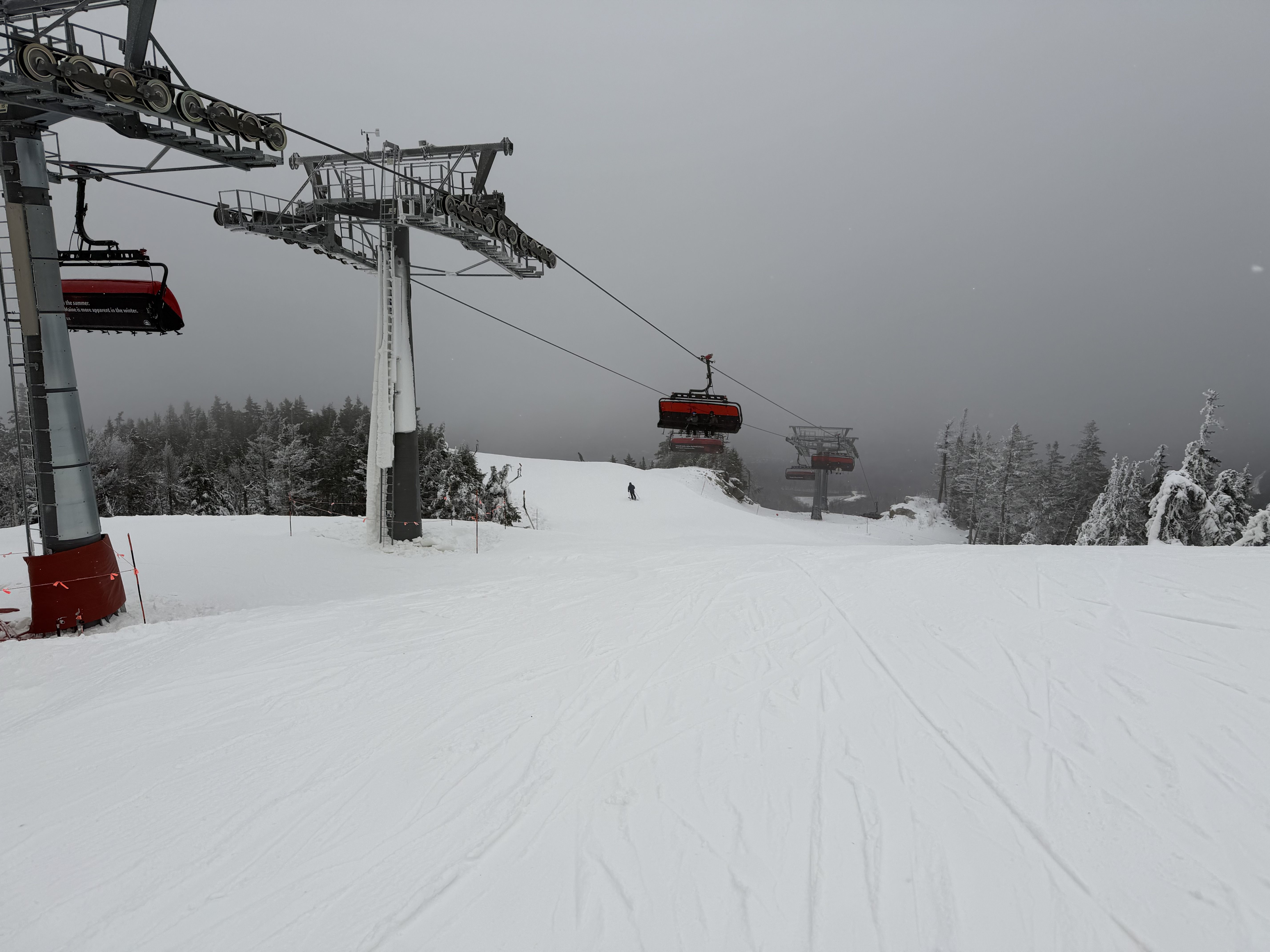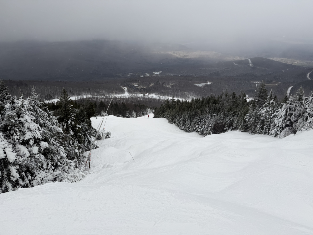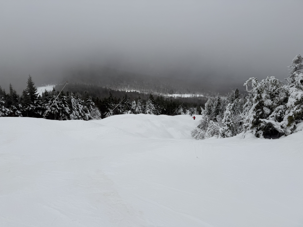 Since we were up in New England before the holidays, we figured we might as well get a couple of days in. I figured there would be more open than Killington and Sunday River, but as of yesterday, they were the only two operating daily. Sunday River is only an hour twenty from where we are staying, so that was the logical choice. We’ve got 5 days there on the iKon, so we figured we would use one. We always regulate ticket usage early on and end up with days leftover anyway. I told my wife that the first day costs $1,100 and every day after that is free… I had been following the snow reports, and knew they had been making a ton of snow, so I was surprised that they had just gotten to the bottom of the Locke triple on Tuesday. Before that was just uploading and downloading for two upper mountain trails. We pulled into the Barker lot at 10 AM with guns still firing top to bottom. The lot there is tiny, but we found a spot, and there were still probably 15-20 spots left to be had. We happened to be there at the “busiest” time, so the lot got emptier from there on out. We booted up in the parking lot, and by the time we got on the lift, the lower mountain guns were off. The top 3 trails had been groomed and did not have snowmaking on open terrain. The bottom had snowmaking that had been turned off, but it wasn’t quite deep enough to be groomed yet. We hopped on the lift, which had no line, and headed to the top. I hadn’t been on it since I worked there, and I forgot how painfully long and slow that lift was. The two “real” trails off the top were Sunday Punch and T2. Both had a deep base and had been groomed. They both skied smoothly and had no ice. Fast carvable surface. Sunday Punch is a little longer and has some nice turns and humps. T2 is a race trail, so it’s just fast and fairly straight. We had already decided to skip the mid station and ride to the bottom, but the line at the mid station confirmed it was the right call. They started loading every other chair at the bottom to leave space for mid station skiers after our first run. Lower Sunday Punch below the mid station was variable to say the least. It was icy hardened manmade snowpack right from the beginning, especially under the guns. They had been running wet, and once that water drained, it locked up. However, the blow over snow on the far edge of the trail was soft and carried a good edge. There were also some small bumps forming. It was a narrower trail and thinner snowpack at the bottom. It started out wet, but locked up as the day went on. We did 4 t2b runs and 2 mid station runs once the line there cleared out around noon. We did 3 runs on each upper mountain trail. It was a leg burner, but all in all, a good day. They used to concentrate all the early season snowmaking on Locke and South Ridge, but now they kind of spread it out across the mountain. Guns were firing everywhere, and the Jordan Bowl opens with 3 t2b runs tomorrow. The mountain fragmentation is annoying, but those trails are all top notch cruisers. I might have to try them next week. As usual, pics below for stoke: