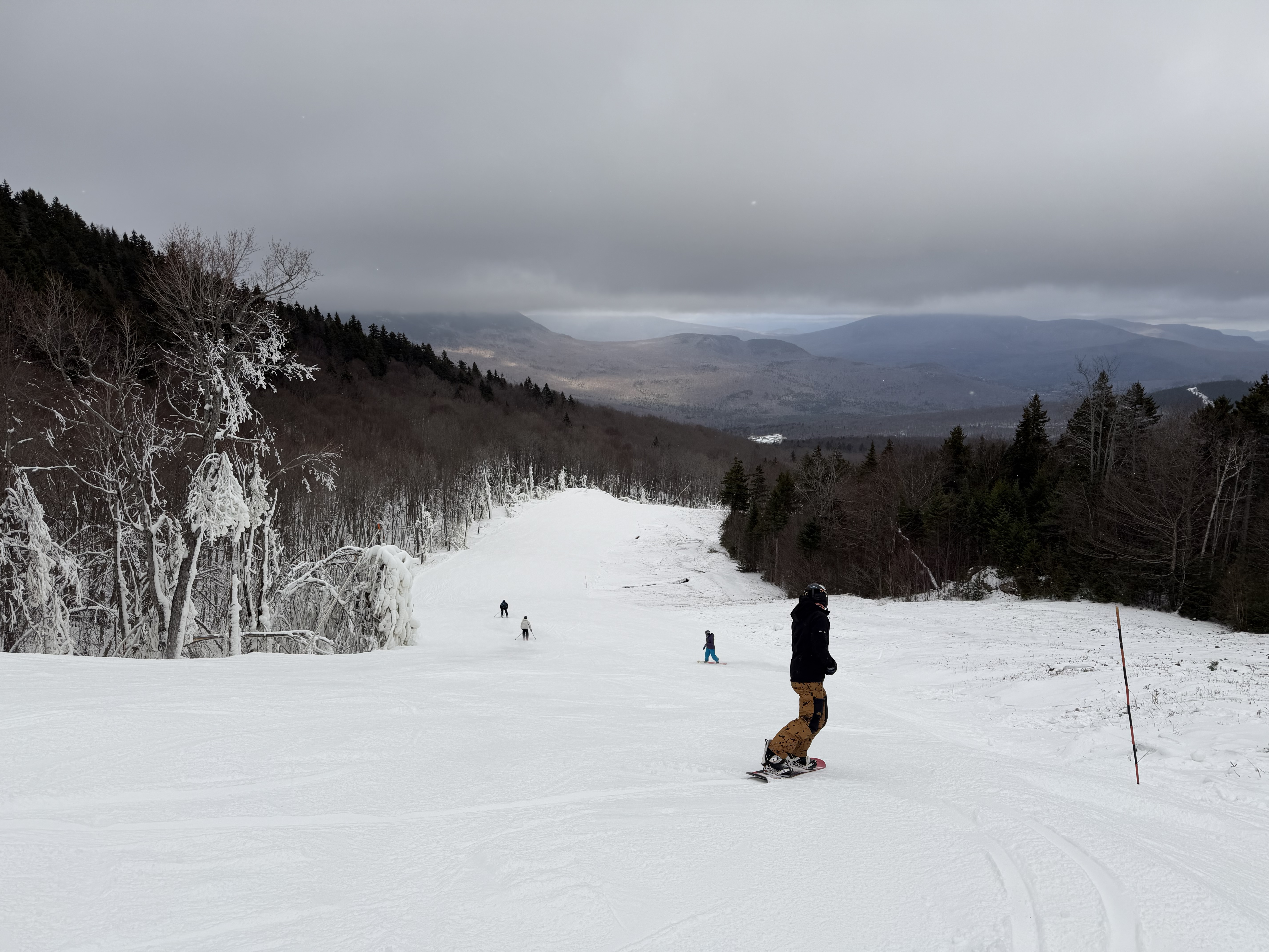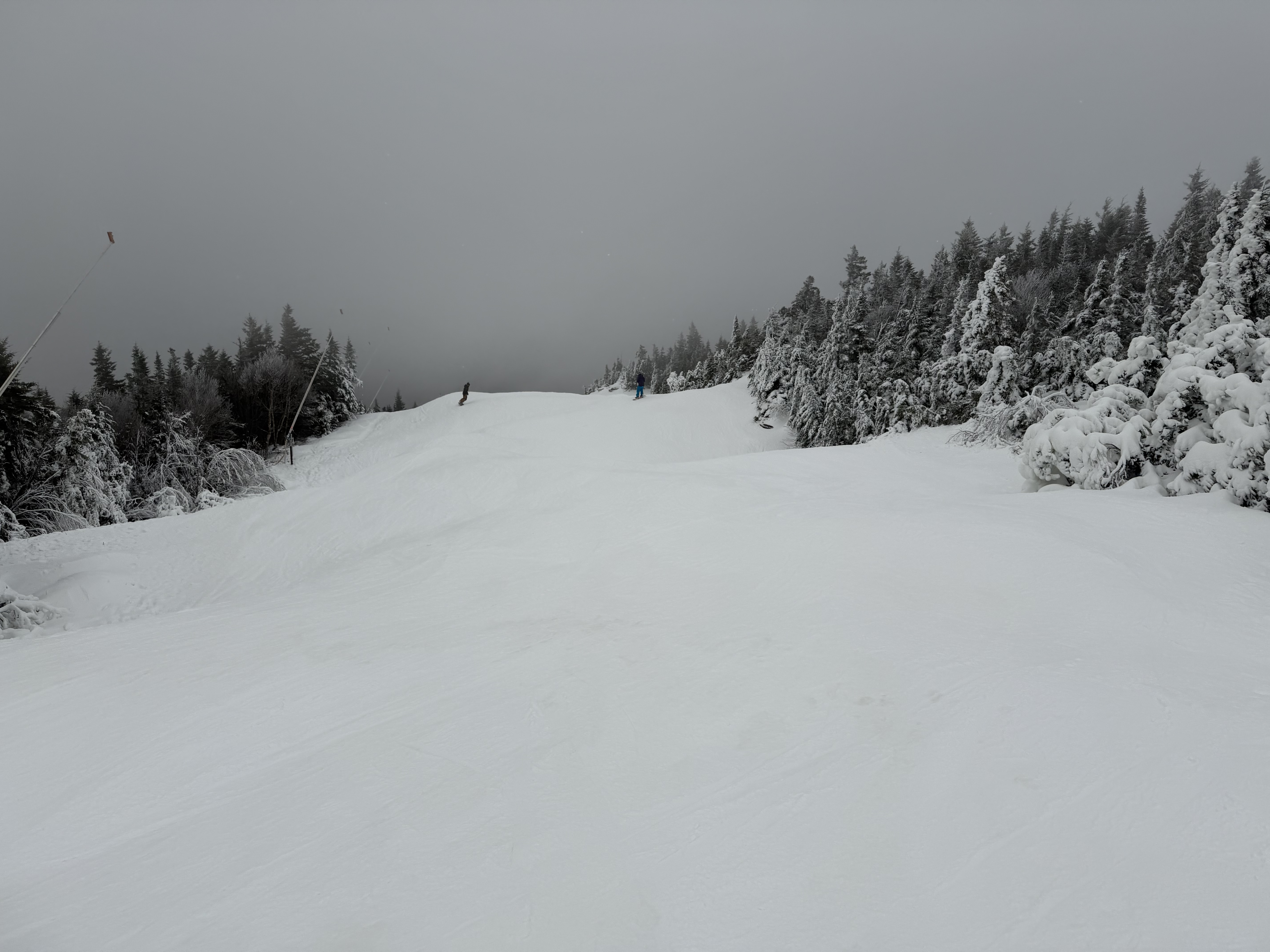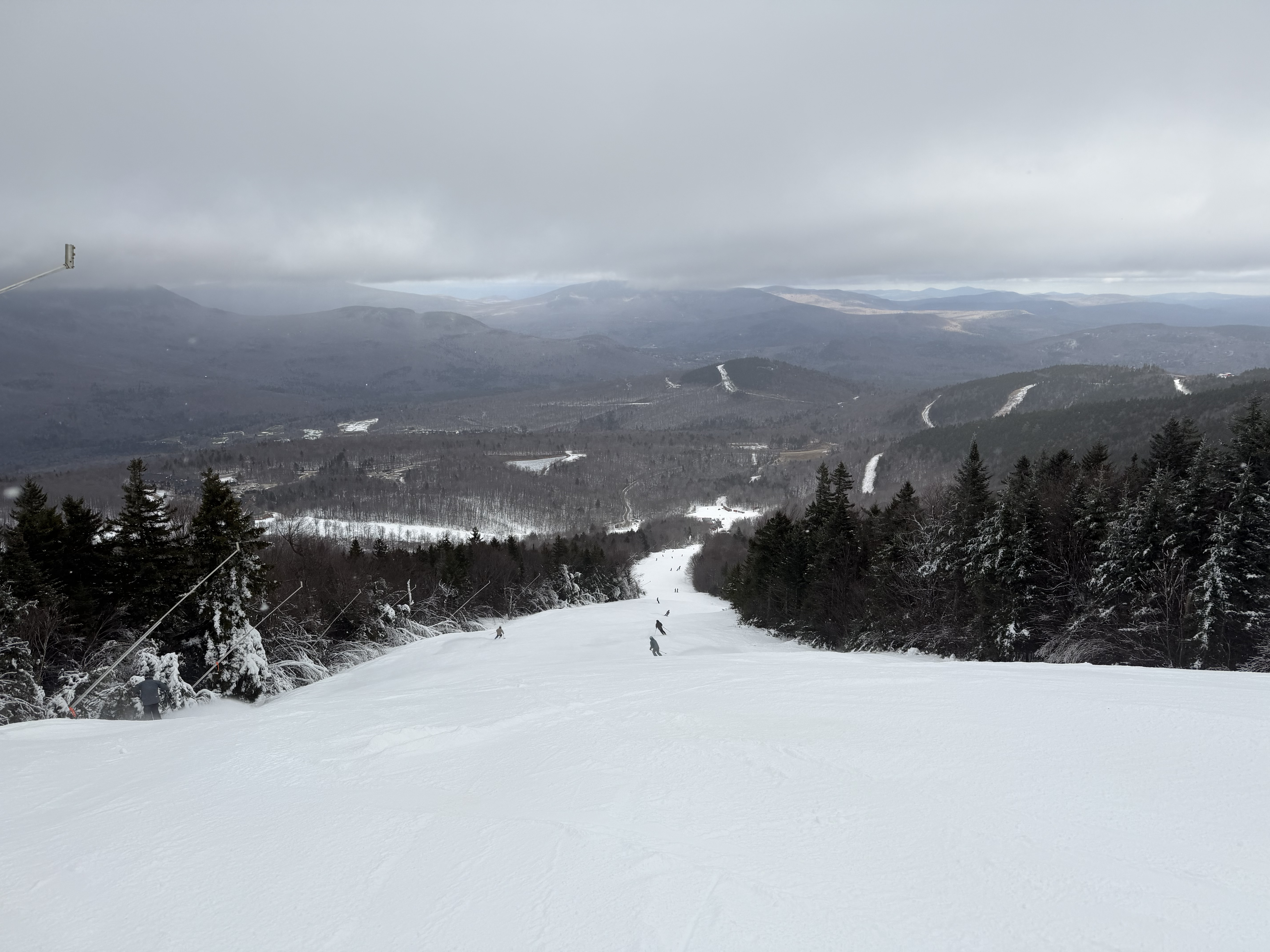 Since we were up in New England before the holidays, we figured we might as well get a couple of days in. I figured there would be more open than Killington and Sunday River, but as of yesterday, they were the only two operating daily. Sunday River is only an hour twenty from where we are staying, so that was the logical choice. We’ve got 5 days there on the iKon, so we figured we would use one. We always regulate ticket usage early on and end up with days leftover anyway. I told my wife that the first day costs $1,100 and every day after that is free… I had been following the snow reports, and knew they had been making a ton of snow, so I was surprised that they had just gotten to the bottom of the Locke triple on Tuesday. Before that was just uploading and downloading for two upper mountain trails. We pulled into the Barker lot at 10 AM with guns still firing top to bottom. The lot there is tiny, but we found a spot, and there were still probably 15-20 spots left to be had. We happened to be there at the “busiest” time, so the lot got emptier from there on out. We booted up in the parking lot, and by the time we got on the lift, the lower mountain guns were off. The top 3 trails had been groomed and did not have snowmaking on open terrain. The bottom had snowmaking that had been turned off, but it wasn’t quite deep enough to be groomed yet. We hopped on the lift, which had no line, and headed to the top. I hadn’t been on it since I worked there, and I forgot how painfully long and slow that lift was. The two “real” trails off the top were Sunday Punch and T2. Both had a deep base and had been groomed. They both skied smoothly and had no ice. Fast carvable surface. Sunday Punch is a little longer and has some nice turns and humps. T2 is a race trail, so it’s just fast and fairly straight. We had already decided to skip the mid station and ride to the bottom, but the line at the mid station confirmed it was the right call. They started loading every other chair at the bottom to leave space for mid station skiers after our first run. Lower Sunday Punch below the mid station was variable to say the least. It was icy hardened manmade snowpack right from the beginning, especially under the guns. They had been running wet, and once that water drained, it locked up. However, the blow over snow on the far edge of the trail was soft and carried a good edge. There were also some small bumps forming. It was a narrower trail and thinner snowpack at the bottom. It started out wet, but locked up as the day went on. We did 4 t2b runs and 2 mid station runs once the line there cleared out around noon. We did 3 runs on each upper mountain trail. It was a leg burner, but all in all, a good day. They used to concentrate all the early season snowmaking on Locke and South Ridge, but now they kind of spread it out across the mountain. Guns were firing everywhere, and the Jordan Bowl opens with 3 t2b runs tomorrow. The mountain fragmentation is annoying, but those trails are all top notch cruisers. I might have to try them next week. As usual, pics below for stoke: