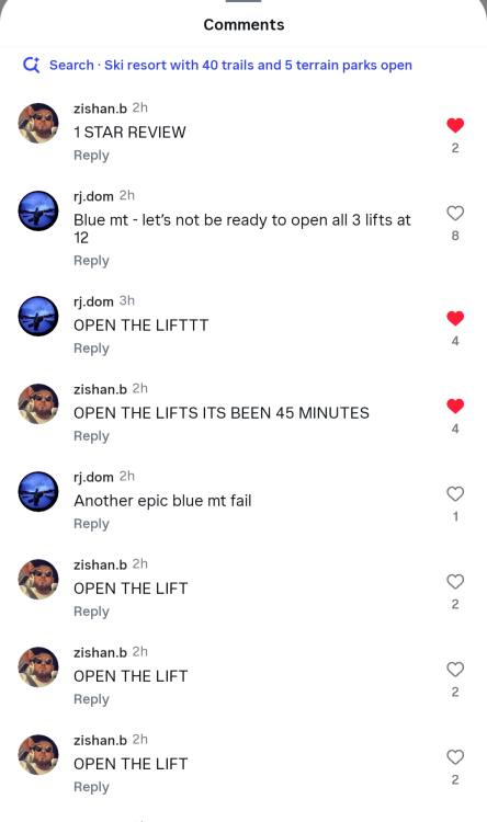 shopey1080 Posted January 25 Author Report Posted January 25 Just got back from epic day at Bear. Roads were clear at 7:30am and are still clear now. No issues whatsoever. I even rode the B lift with a few guys who would have otherwise been working at Blue mountain today if it wasn’t for the softy Mc softy, Nick Delich. Blue F’d us all today and has set the precedent for all future major snow events. Enjoy your memories of skiing fresh pow at Blue, that’s all we will ever have. We are not worthy of assessing our own risks and making our own judgment call. I’m sorry, I thought this was America? 3 1 1